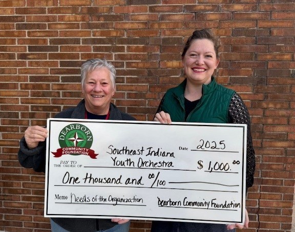 LAWRENCEBURG, Ind., NOVEMBER 17, 2025 – A $1,000 Proactive Grant from the Dearborn Community Foundation to the Southeast Indiana Youth Orchestra (SEIYO) for general purposes should be music to the ears of anyone who appreciates development of young musicians.
