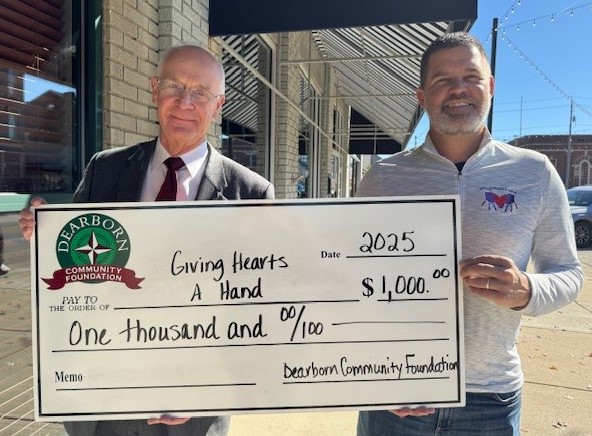LAWRENCEBURG, Ind., NOVEMBER 24, 2025 – The Dearborn Community Foundation (DCF), Inc. recently awarded a $1,000 Proactive Grant to the Giving Hearts a Hand (GHH) organization, which heads a cause that Board member James D. Humphrey, who made the recommendation, personally understands.